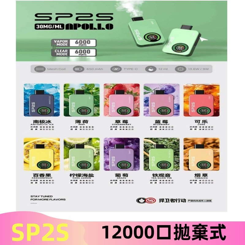 SP2S Apollo 12000口拋棄式電子煙:革新您的隨身霧化體驗